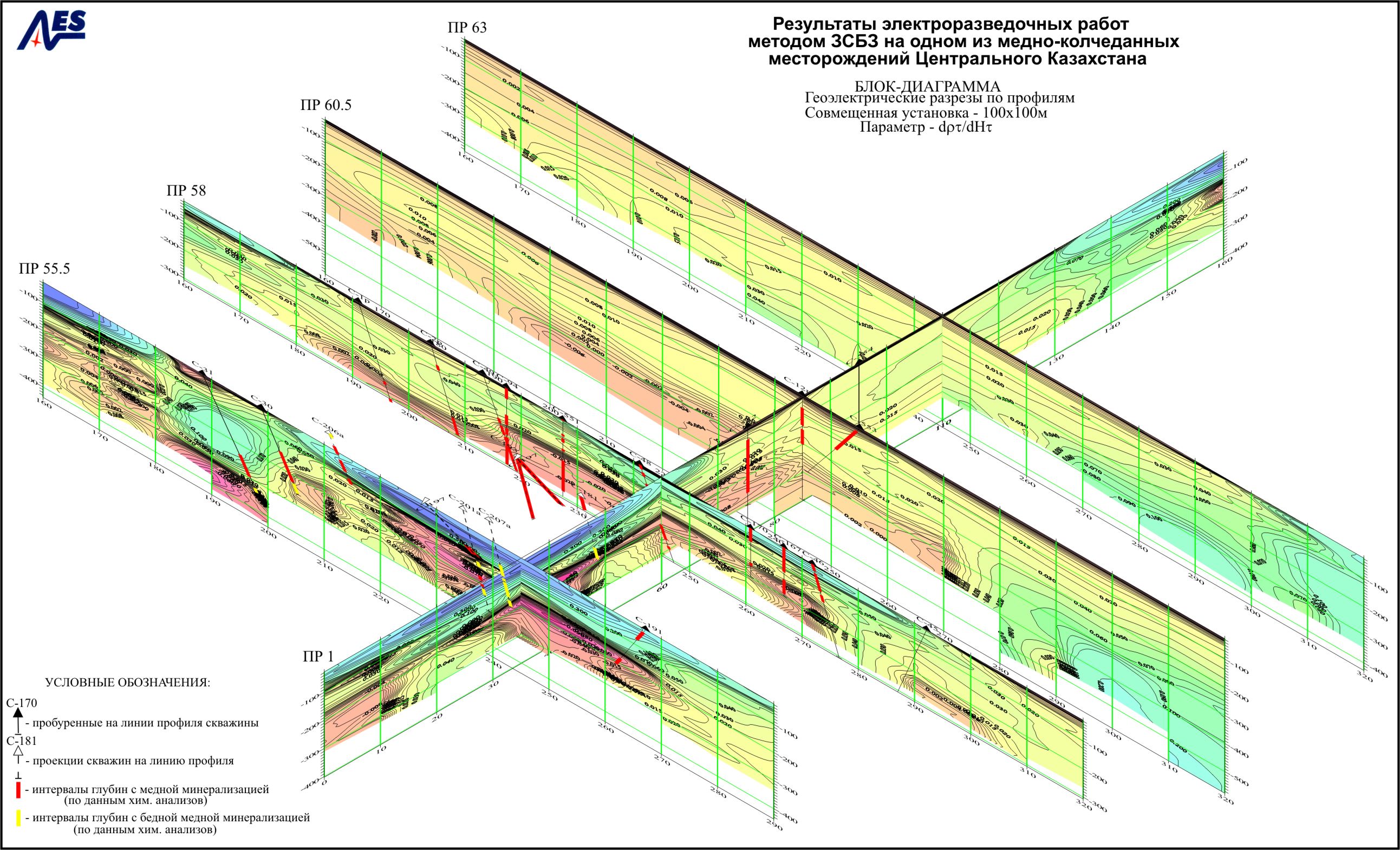 По характеру поведения изоом либо изолиний равной кажущейся проводимости выделяются зоны повышенной аномальной электропроводности и зоны пониженных кажущихся сопротивлений, в которых наиболее вероятно наличие хорошо проводящих рудных тел.